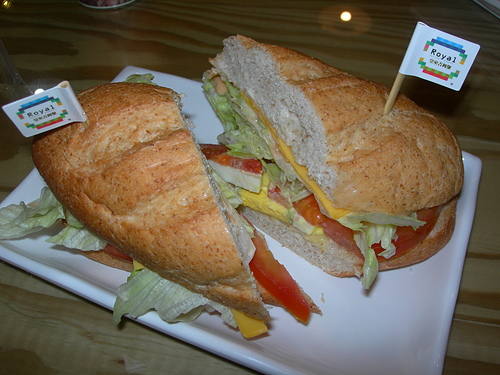 哇~好大一份!!使用的是全麥法國,沒有烤過吃起來是紮實有嚼勁的,