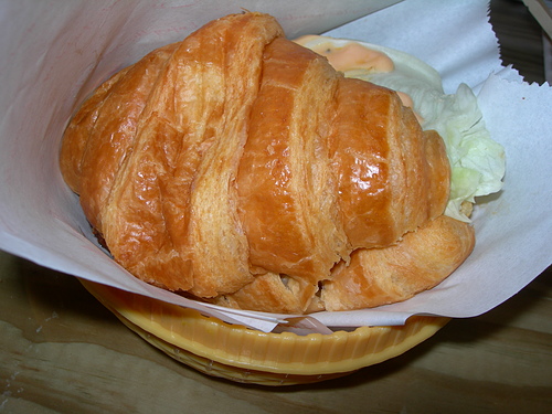可頌也是好大一個,烤得香香酥酥滴,夾了好多生菜,