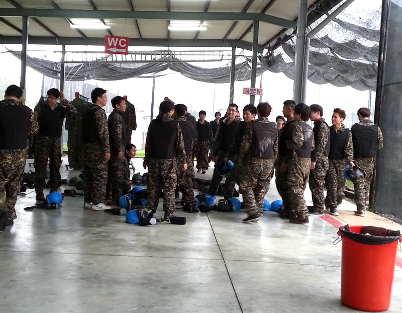 值得一提的是這裡的教官,講解很幽默,讓大家笑聲連連,因為我們人多,所以包場了。分成4隊,2個場地對決。每個人180顆子彈,當然中場也買了一些子彈,遊戲就是盡興。