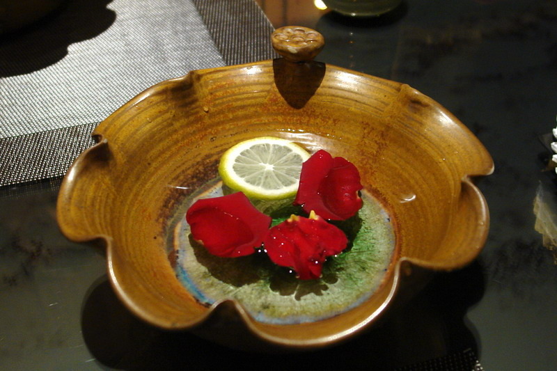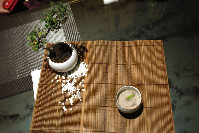 這個盤子,很有食養山房的調性,不過服務生很快把花收走,徒留蒸盅拌饕客