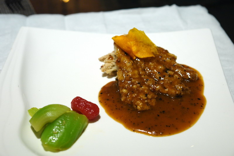 香菇、蘑菇、白菜、筍絲,用法式濃湯的概念,所詮釋的一道濃湯。其實有一定的水準,但我喝慣了用純菇打成的濃湯,不同麵粉的濃稠口感,所以沒有驚艷。他們應該用法式高級料理的濃湯工法,才是合理對價。