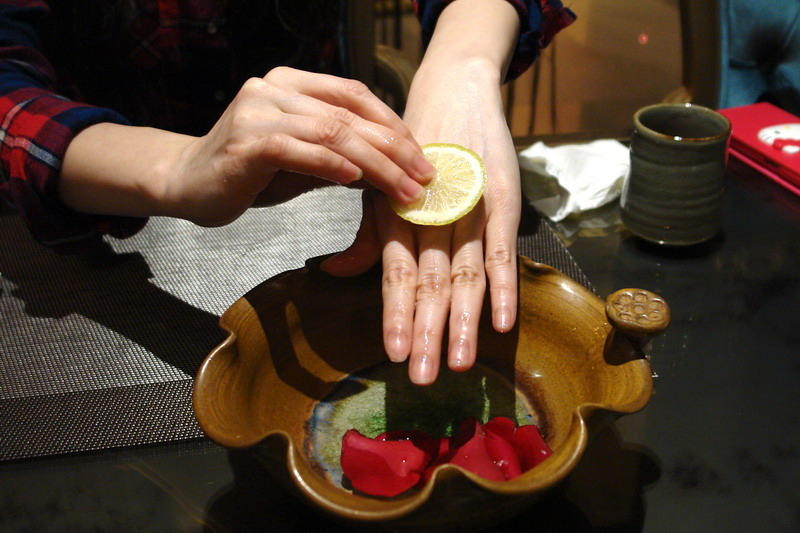 3,再搓手背,然後稍洗,擦乾,等著出餐。