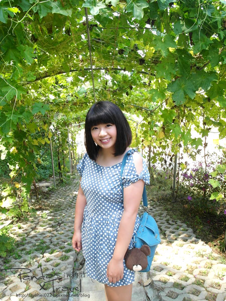 待在絲瓜棚裡拍了一張,陽光打光拍的好亮,這天穿娃娃裝。