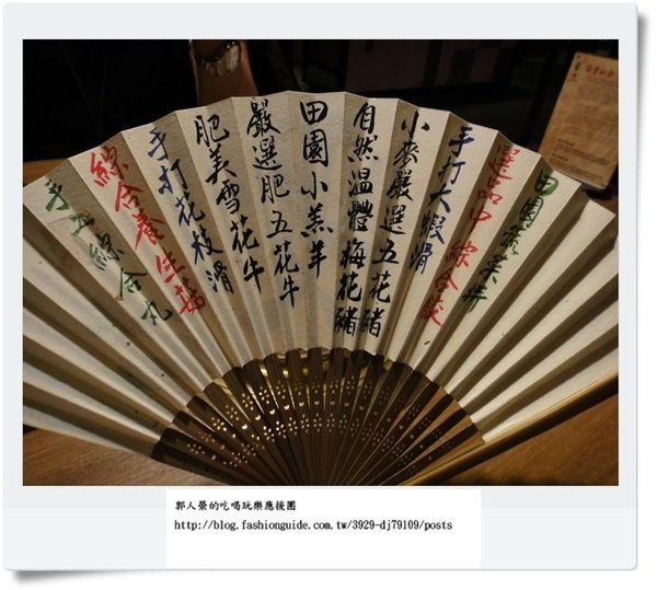 很酷吧~ 菜單是用一把扇子寫在上頭