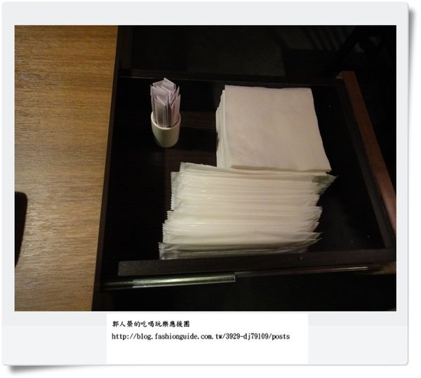 圓桌邊緣的小抽屜,貼心準備了乾、濕紙巾和牙籤
