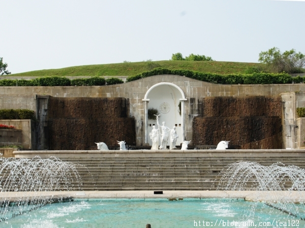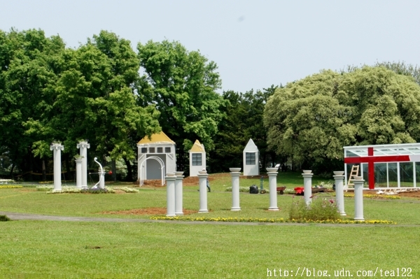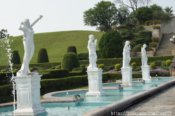 繞過山丘,仿中古世紀的歐洲庭園,許願池兩旁延展出一尊尊美麗白色的雕像,在藍天綠地的襯托下,格外吸睛,來的時間不巧,4/4~5/25【愛戀神話 情定埔心】邱比特愛情神殿活動,牧場以希臘造景藝術全新演繹邱比特的愛情神殿,包含象徵信任與守護的玫瑰花屋、攜手締結未來的幸福教堂等,要讓整個春天充滿愛的粉紅泡泡,此外還有戀愛闖關遊戲,我提早五天來,所有的工程還在趕工中,與之失之交臂,真是太可惜了,如果有興趣的朋友,不妨利用好康活動,我先來當報馬仔:4/4~4/6,12歲(含)以下孩童憑證件享免費入園;4/4~5/31,820元愛情禮讚雙人套票,含全票2張+遊樂點券100點+商品點券100點+愛情列車乘車券2張(假日使用再加贈:愛的存影浪漫照X1);於主題活動網中玩闖關遊戲就有機會獲得100元折價券,可折抵全票400元或優待票300元(使用期限至6/30止)。雖然我沒搶到好康,不過,這資訊一定要分享給好朋友們。