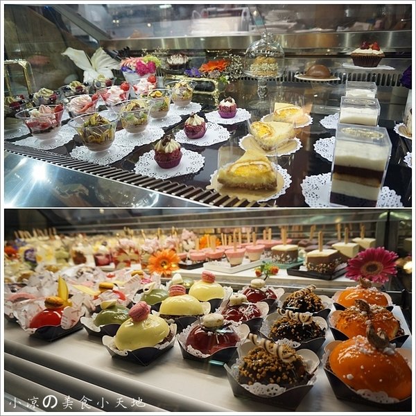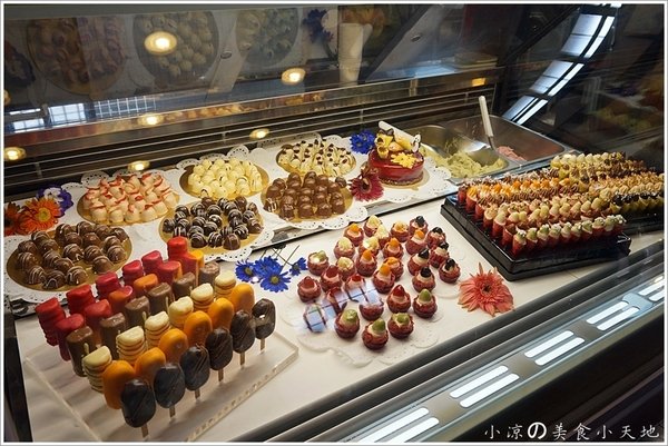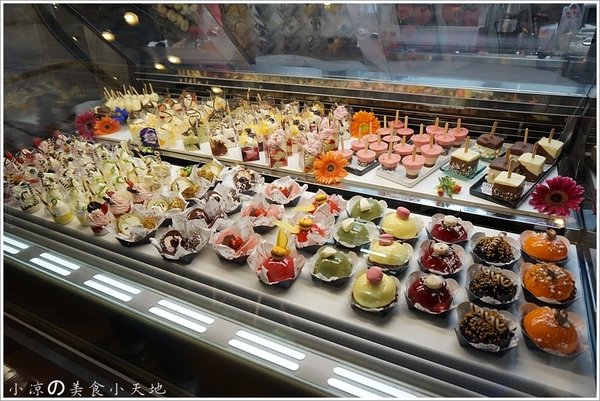 光玻璃櫥櫃內的甜品,樣式獨特加上色彩繽紛讓人一時也不知道該如何選