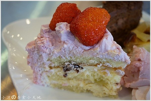 蛋糕體本身很紮實又帶點鬆軟,搭著果香氣濃郁的奶油