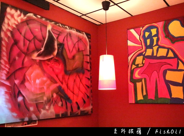 朱紅色的壁面掛上了各式壁畫,裡頭有各式的經典畫像,