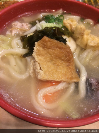 這種微涼的天氣配上一碗鍋燒湯麵,熱湯絕對可以溫暖我們心呀,配上超Q彈有勁的烏龍麵,和大碗的火鍋料,實在令人滿足,不過小建議就是希望可以湯底再鹹一點點….一點點…