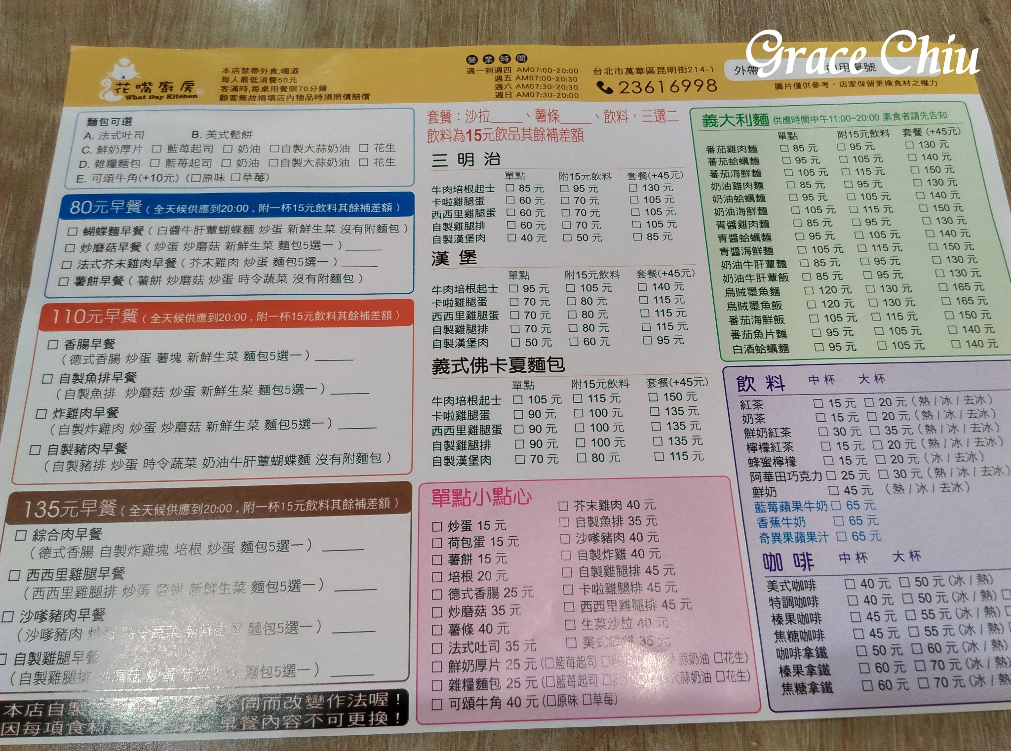 某次終於是停下腳步認真的把店名記清楚上網查資訊,原來花嘴廚房以賣美式平價早午餐為主,前身是大嘴鳥,說到大嘴鳥我就有印象了,之前在西門町工作的朋友一直在誇大嘴鳥的早餐好吃,只是我一直都沒機會去吃就是了~記好了營業時間準備找機會前往.