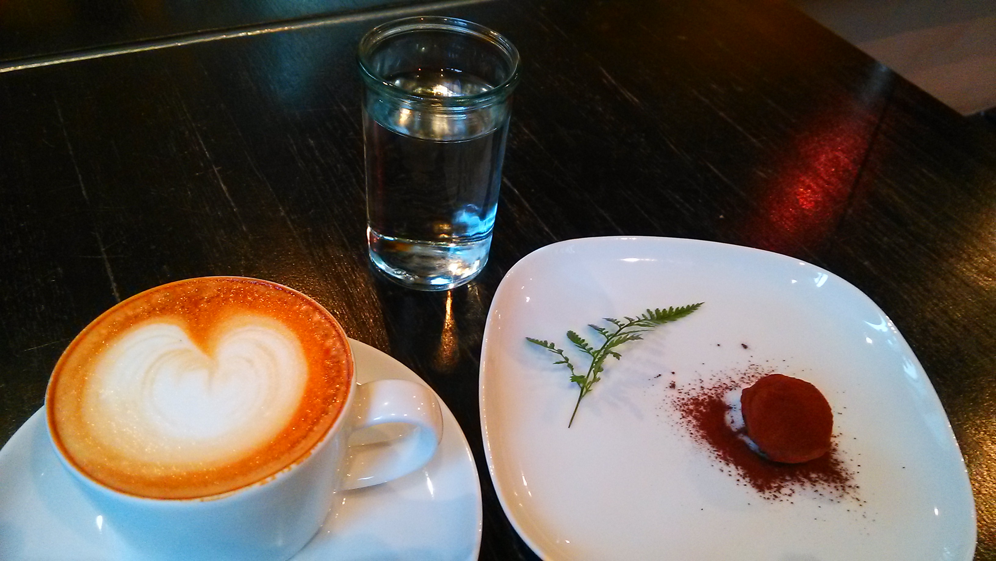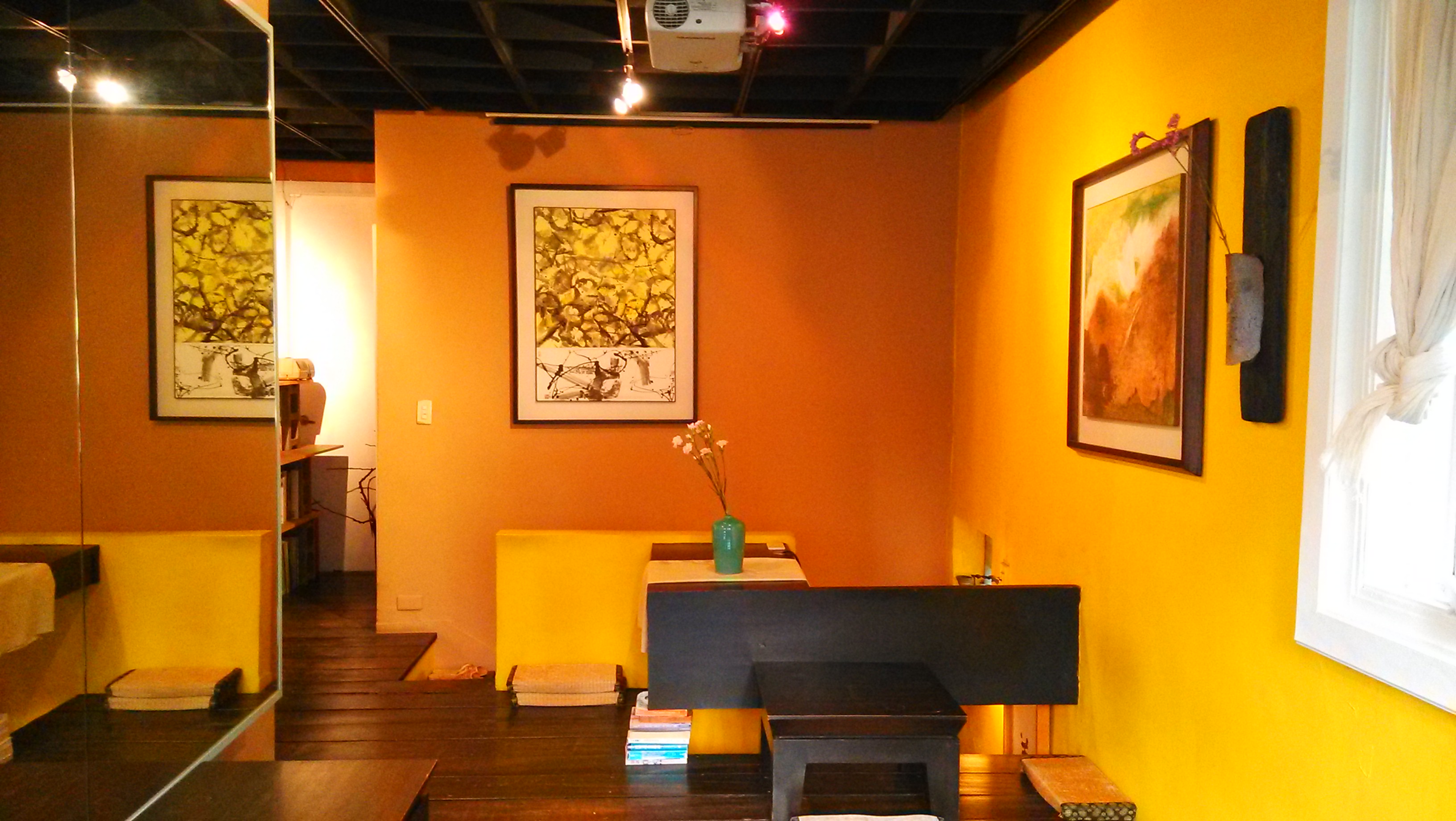 點了一杯卡布奇諾和一顆裡頭包藏咖啡豆的巧克力,慢慢品嘗,香氣甚濃,兩者實是絕配。二樓的布置亦古色古香,不失典雅,除了樓梯旁的圖書區外,還有一處是需預約才能進入的"藝品展示區",牆上亦貼了幾張頗富特色的明信片,由於展示區的門是鎖上的,只得從外頭蓋覽內部的展品。挑選了兩本跟旅行有關的書籍,一邊享用咖啡、甜點,一邊享受久違的,沒有壓力的閱讀樂趣。閱讀時,店內的其中一隻貓,幾次走進我,探探之後又匆匆離去。大約待到傍晚六七點時,天色漸暗,往窗外望去,可見弦月高掛天上,似透過窗俯瞰著我。離開前,跟老闆攀談了幾句,得知書法作品的主人,大裡的菩薩寺,以及一些關於店內的資訊。老闆說這週末店內有一市集活動,或許再度造訪,點一杯中式茶飲,再翻翻幾本閒書,是忙裡偷閒的人生之樂。