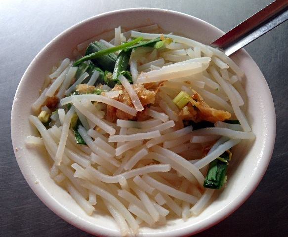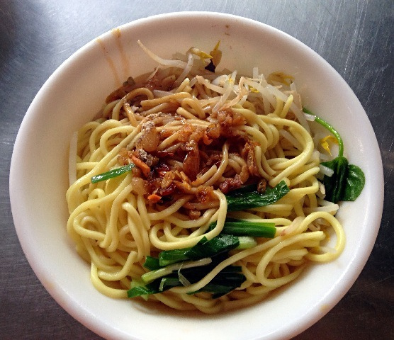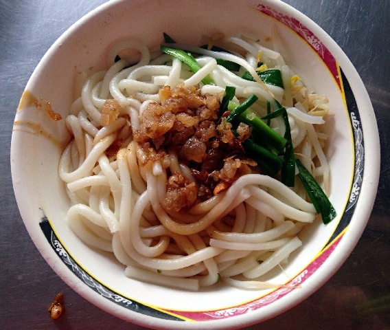 油蔥酥 韭菜 豆芽菜 與Q彈的米苔目,拌勻後吃~香氣與口感兼具
