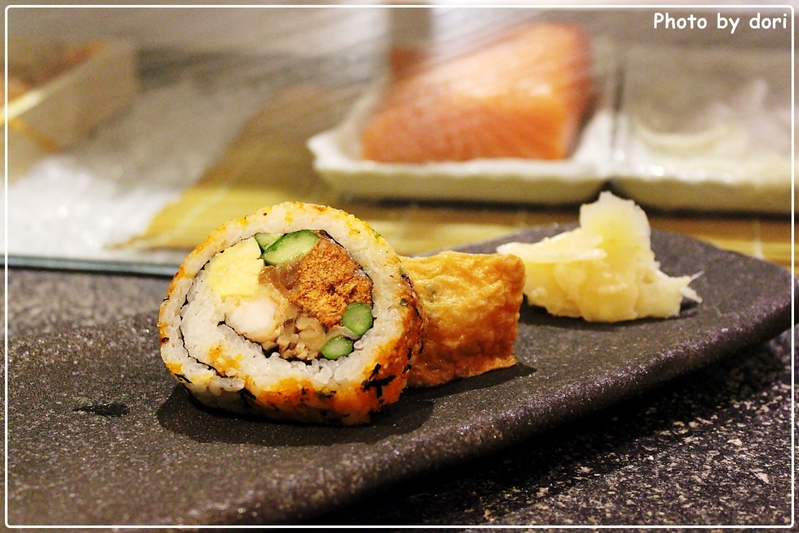 端上的是花壽司與豆皮壽司,看似比較一般了些,豆皮不會過於厚實,反而還有種清甜,加上一旁的嫩薑片依然感覺頗對味。