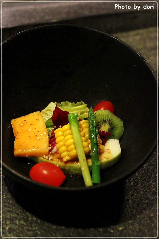 日式油醋醬汁與鮮果時蔬拌勻食用,果物都蠻香甜,個人感覺品質應是都篩選過。