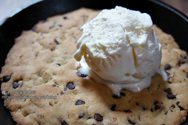 那黑黑的顆粒是巧克力碎片,比薩奇是現做現烤,