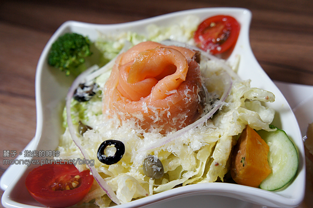 煙燻鮭魚捲成玫瑰花的形狀已經令人食指大動,滋味也是鮮嫩滑口,