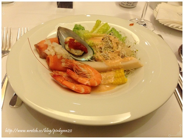 我拿了一點生菜沙拉搭配海鮮冷盤,煙燻鮭魚真的好好吃喔~