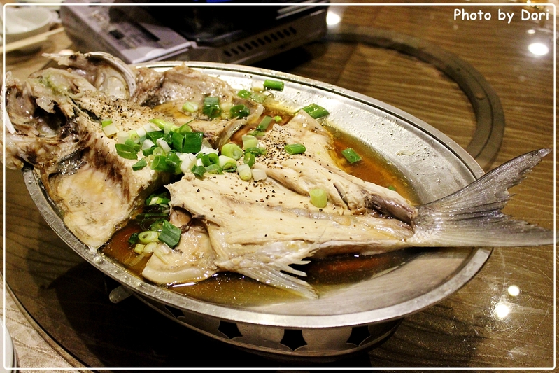 通常餐廳提供的清蒸魚食材大多為石斑魚、鱸魚,當這一大尾的蒸魚料理被端上桌,怎麼看都覺得不太像,詢問過服務人員之後,竟然是烏魚!也對吃過烏魚子卻沒吃過烏魚的我來說,倒是感覺挺新鮮。