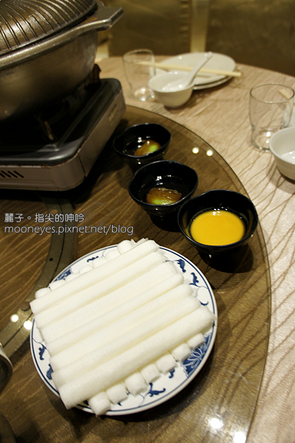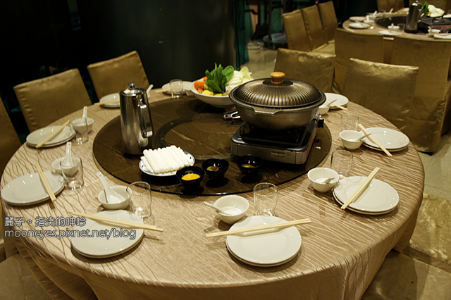 桌上已經擺好了我們的餐具跟主要湯品爐子,