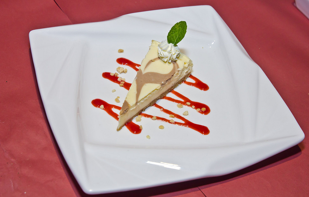 起司搭配底盤的野莓醬,帶點酸酸的口感,有加分效果