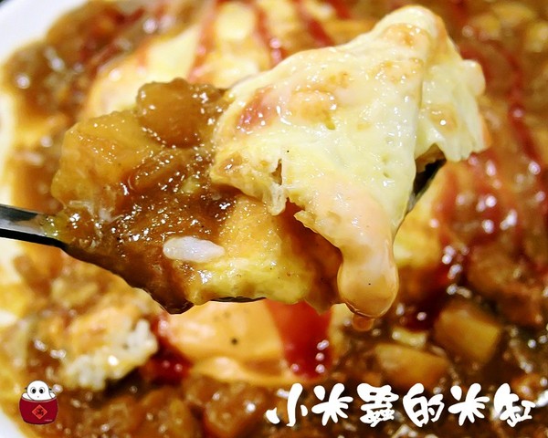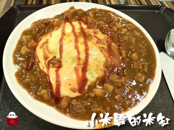 蛋包飯都有加咖哩了還淋上了蕃茄醬.....