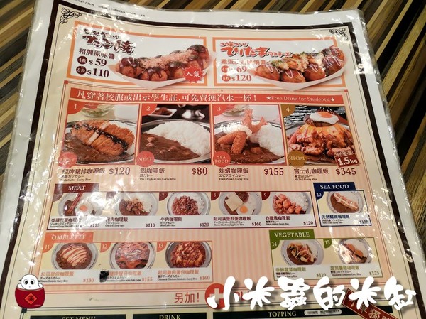 簡單的菜單上,有著咖哩與章魚燒的項目