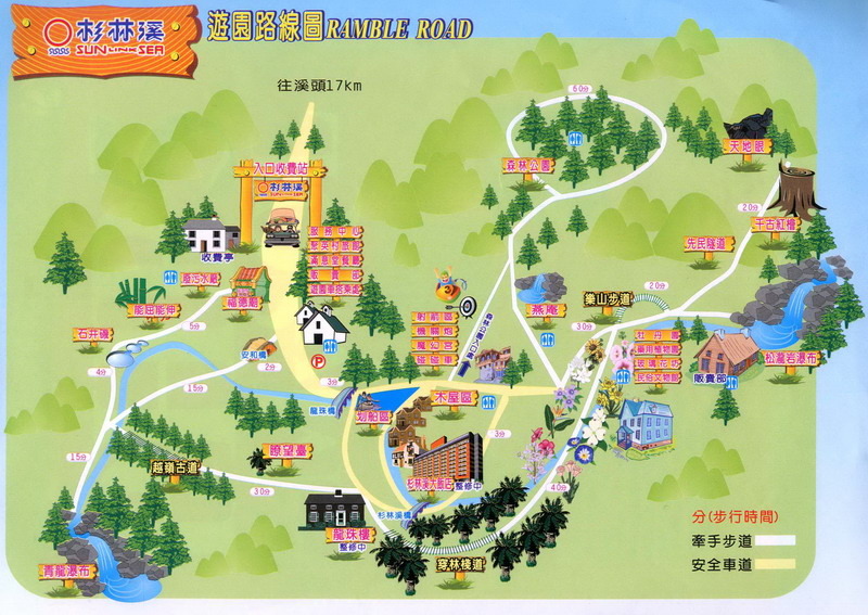 先附上一張地圖,其實杉林溪就在溪頭的上方17公里,沿途的十二生肖圖,會在飄來飄去的山嵐中出現,但其實豬12 出現後,還有一段路,我想這大概是心理戰吧。