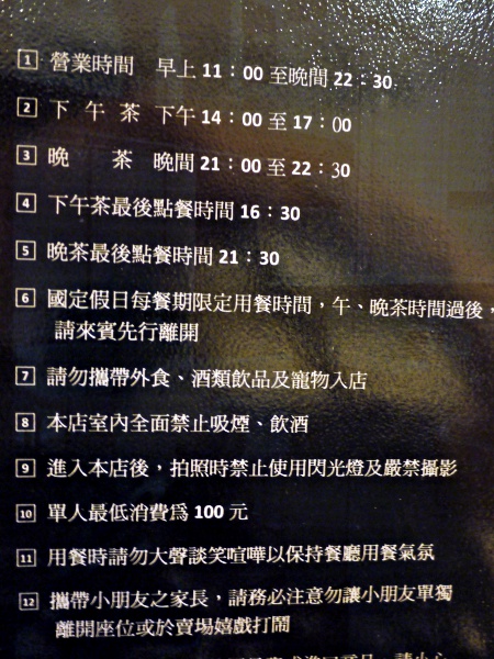 主要供應中西式套餐,還有下午茶。用餐時間如上,但店家基本上不太會趕人的。