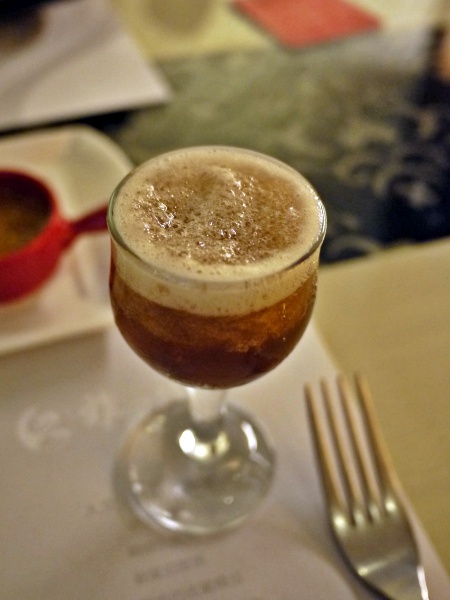 開胃梅醋。這一小杯的梅醋,專業的服務生還叮囑我們要小口飲用。