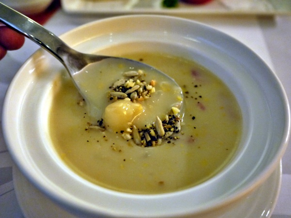 玉米濃湯,湯感稍微普通了點,應該是因為麵糊的比重稍強,喝起來較粘稠。