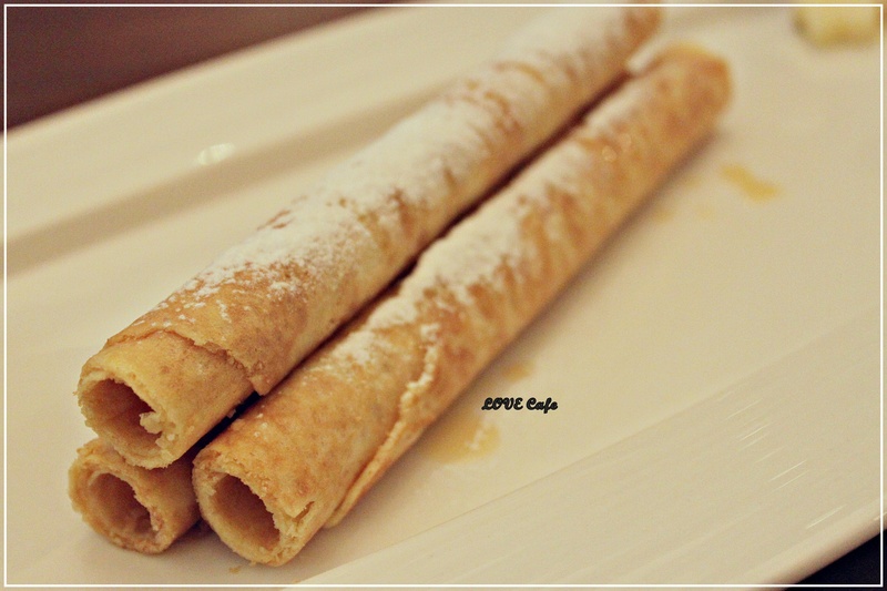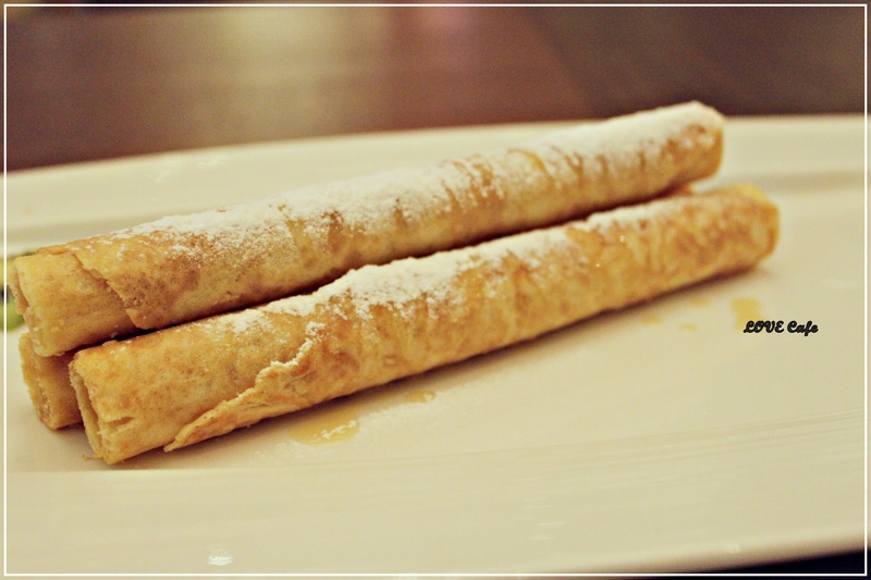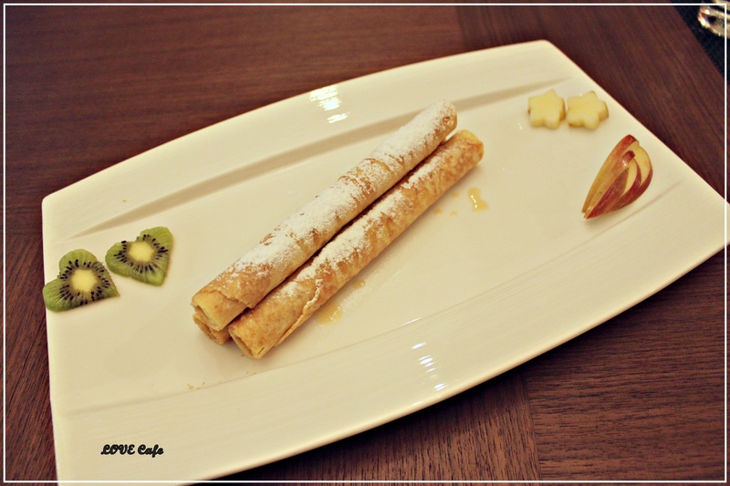 蛋捲吃起來有紮實感 沾上牛奶糖漿 味道更有層次