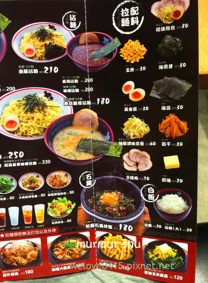 一碗拉麵大概落在NT 180~260之間!除了拉麵也是有飯類,不過居然拉麵這麼有名,還是點拉麵吧XD
