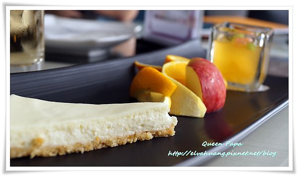 西式甜點水果:手工乳酪蛋糕(底層是碎餅堅果)上層的乳酪綿密中有著優格的酸甜滋味