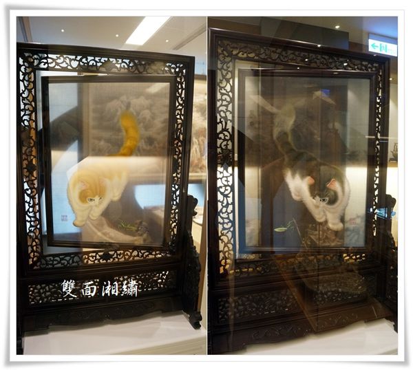 雙面湘繡...真的完全看不出來正反兩面的貓兒可是不同顏色的!