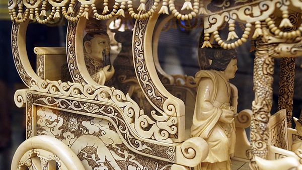 這個是象牙的雕刻~ 展現著中國工藝精粹~根據了解這組是"楊貴妃與唐明皇"出遊的作品