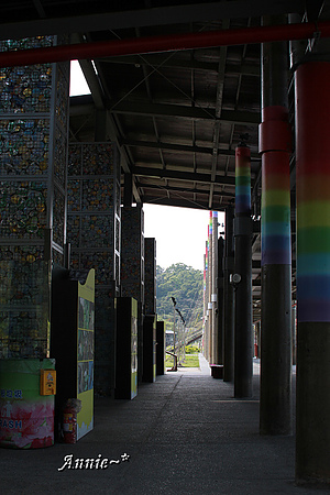 延伸進來的彩虹電線杆也是遊客中心的主要柱體~