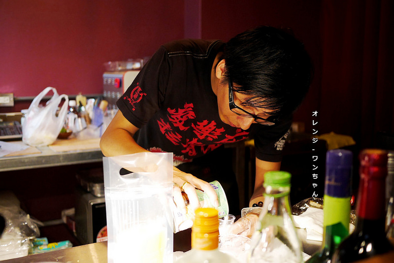 點完之後就可以看到老闆開始拿出瓶瓶罐罐幫你開始調酒了..