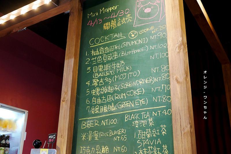 它們家賣的調酒飲料名字跟價位都清楚明白的寫在旁邊的小黑板上面..