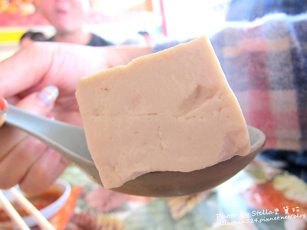 看看這手工的板豆腐超細緻,幾乎沒看見洞孔!!口感非常軟嫩,很有古早味