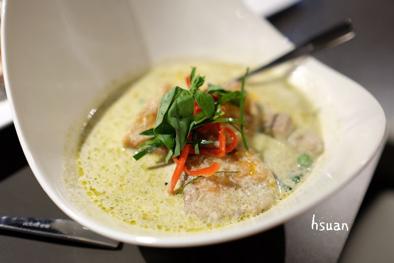店家使用的是鯛魚片 先炸過以後在放置於綠咖哩中