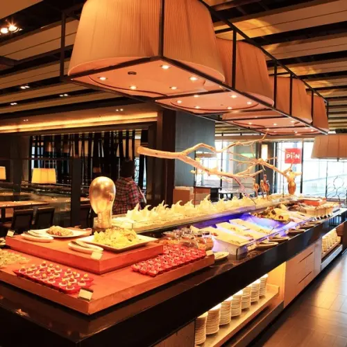 值得一提的是中間特色開放式現場備料區以及上方的綠化視覺設計,也成為饗食天堂獨樹一格的店家特色,讓新鮮美味不只吃到嘴裡,更能夠盡收眼底,同時也讓來店用餐的客人觀摩備料過程而更吃得安心。