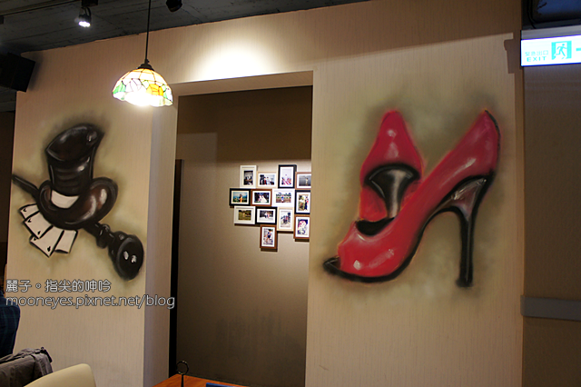 還有這洗手間前的牆面,高帽子跟高跟鞋好搶眼。