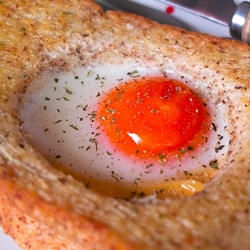 太陽蛋的色澤光看就覺得好誘人,本身沒有過多調味,淡淡的鹽花提味就很可口囉!