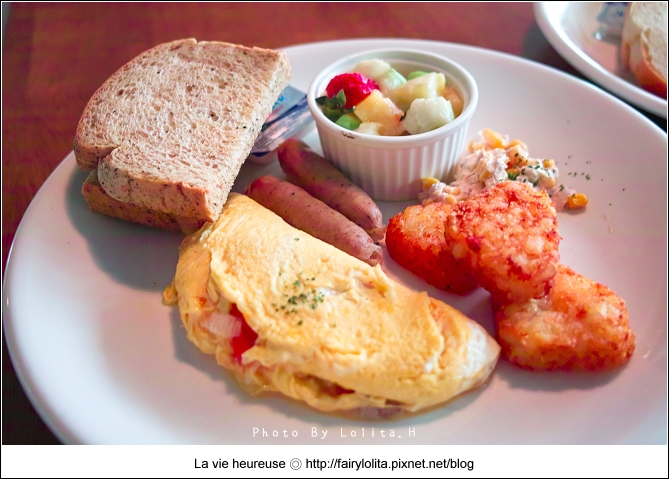 歐姆蛋的顏色煎得還不錯,比較可惜的是內餡好清稀,而且食材感覺只吃到蕃茄,比起其它兩道,這個歐姆蛋倒不是很推薦!