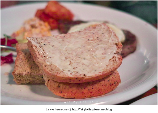 全麥麵包有附一小盒奶油,略帶鹹味,不過我還是不太愛全麥吐司,哈哈!果然太健康的食材不討我歡心 >///<