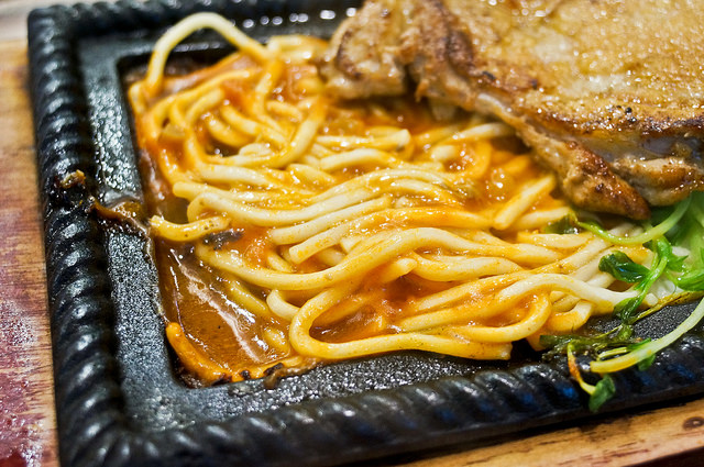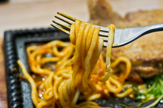 有些人會拿到就先把鐵板麵攪開不要煎焦