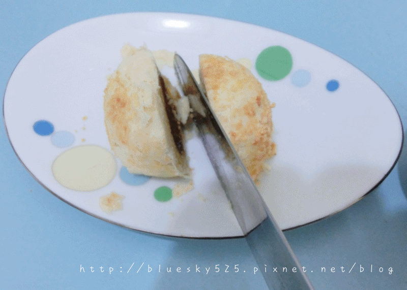 可以看到金黃酥脆的外皮裡面還有淡黃色的內餡