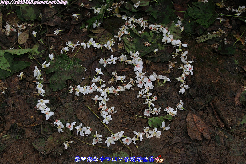 陸上就可以看見許多人將掉落在地上的桐花收集,拼成個愛心,或是情侶間對另一半的真心告白
