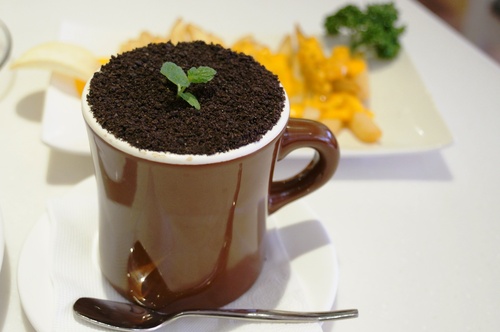下面是咖啡,上面是泥土(OREO巧克力餅乾磨成粉製成的),